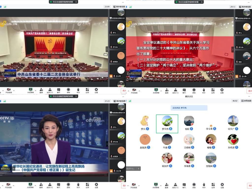 讯(通讯员:李令青 摄影:罗元)11月30日下午,心理学院党委理论学习中心组在线上举行集体学习活动。学院党委书记罗文伟带领学习了《让党旗在新征程上高高飘扬——<中国共产党章程(修正案)>诞生记》、中共山东省委十二届二次全体会议精神以及《习近平谈治国理政》第四卷中的重要文章《新时代党和人民奋进的必由之路》。会议由学院党委书记罗文伟主持。