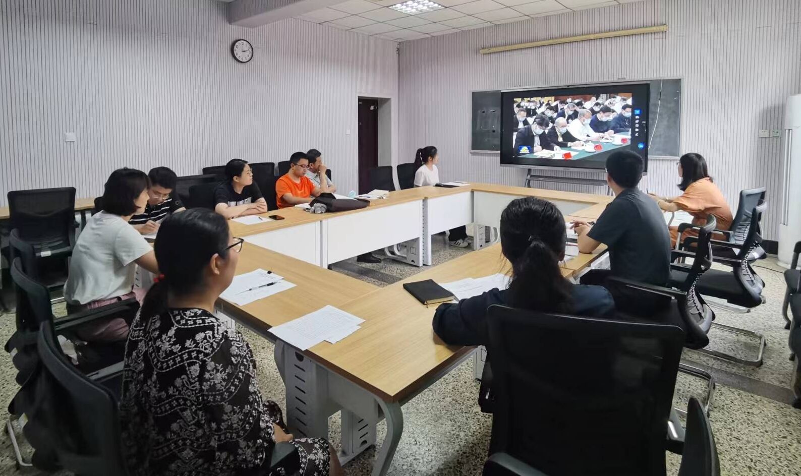 会上,中心组成员集体观看了“习近平总书记在文化传承发展座谈会上重要讲话精神”新闻报道视频,学习讲话精神。随后,学院党委副书记朱伟卫领学了浙江省20年持之以恒实施“千万工程”经验案例。最后,学院党委书记罗文伟领学了中央主题教育领导小组办公室对浙江省深化发展“浦江经验”的做法调研后形成的《真下真访民情实心实意办事》调研情况报告。