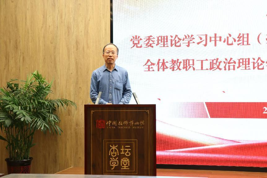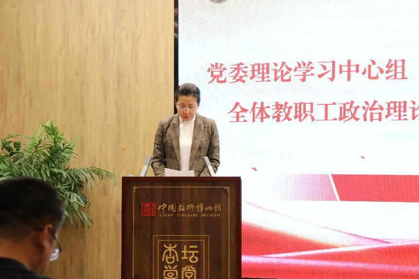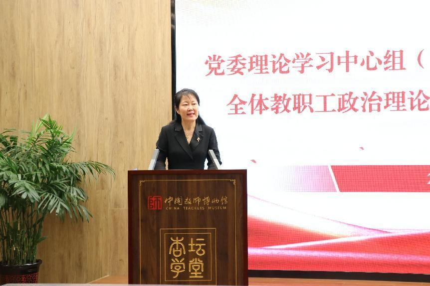 在中国教师博物馆讲习馆开展全体教职工政治理论学习暨师德师风教育专题教育会议,全体教职工出席会议,会议由党委书记罗文伟主持。