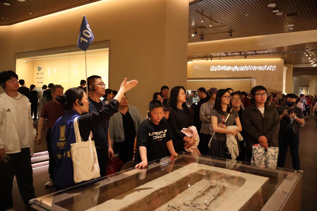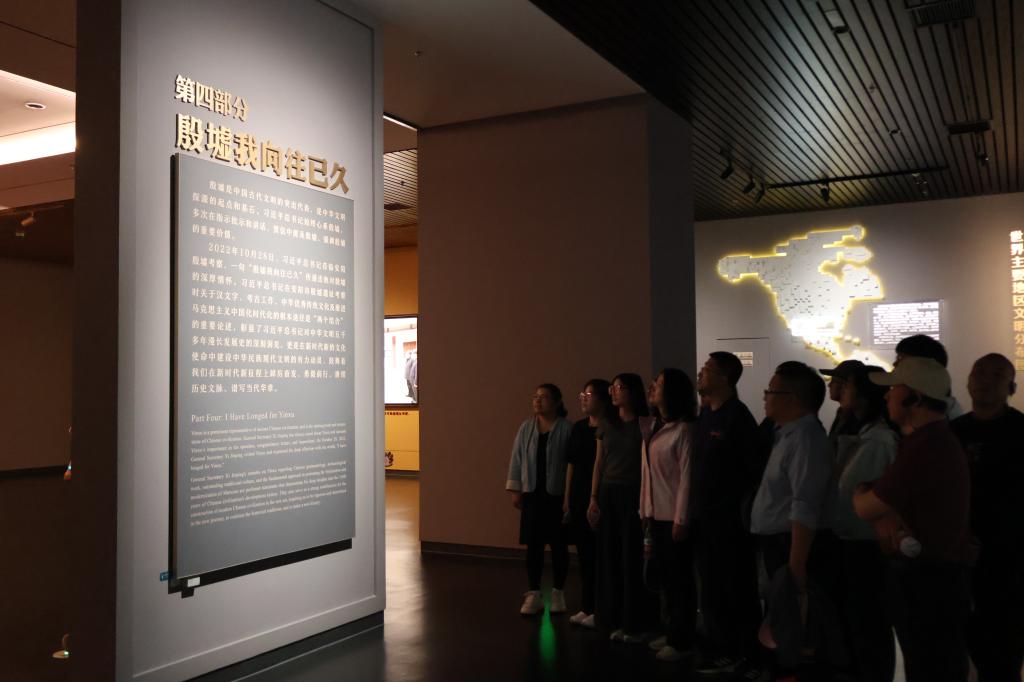 4月25日午后,师生党员首先抵达殷墟博物馆。大家依次走进甲骨窖穴、青铜器展厅、妇好墓等展区,近距离观赏司母戊鼎等国宝重器,仔细研读甲骨文字、青铜礼器与场景复原,系统了解商代政治制度、手工业成就与社会生活风貌,深刻感受中华文明的源远流长与灿烂辉煌。在一件件承载民族记忆的文物面前,师生们深切感悟先辈创造的伟大文明,厚植家国情怀、激发爱国热情、凝聚奋进力量,在历史传承中坚定文化自信,深化对以人民为中心、坚守教育初心的正确政绩观理解。