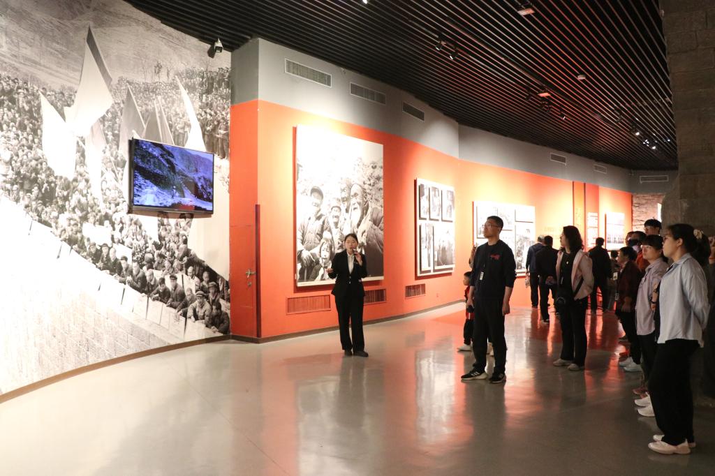 4月26日,师生党员来到红旗渠纪念馆。展馆以千年旱魔、世代抗争、红旗引领、创造奇迹、英雄人民、太行丰碑等板块系统展陈,通过大量历史图片、文献实物、场景复原与多媒体资料,全面再现林县人民十年苦战、绝壁凿渠的艰辛历程。大家认真聆听吴祖太等英雄模范为修渠舍小家、为大家、不畏牺牲的感人事迹,深刻感悟在物资匮乏、工具简陋、环境恶劣的艰苦条件下,建设者们不等不靠、自力更生、攻坚克难、引水为民的初心使命与担当精神,接受深刻的党性教育与精神淬炼。