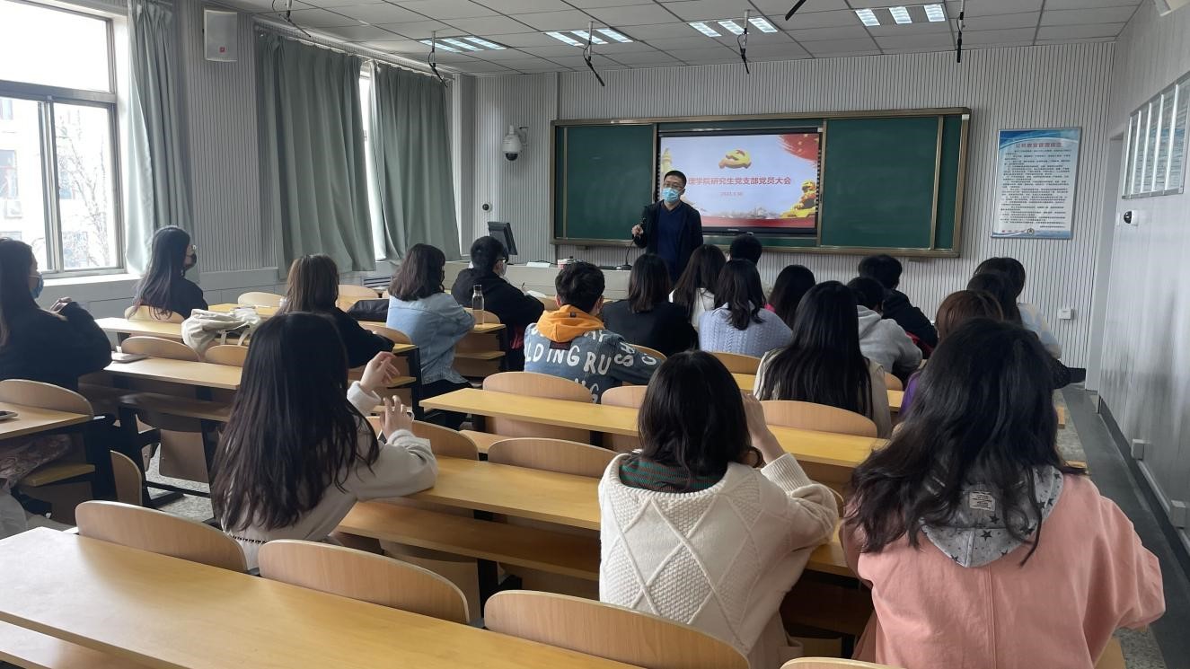 411室)相结合的模式开展。会议由研究生党支部书记李佳泰主持,学院党委书记罗文伟、王亚如、孔亚亚、姜泽文以及15名积极分子列席会议。