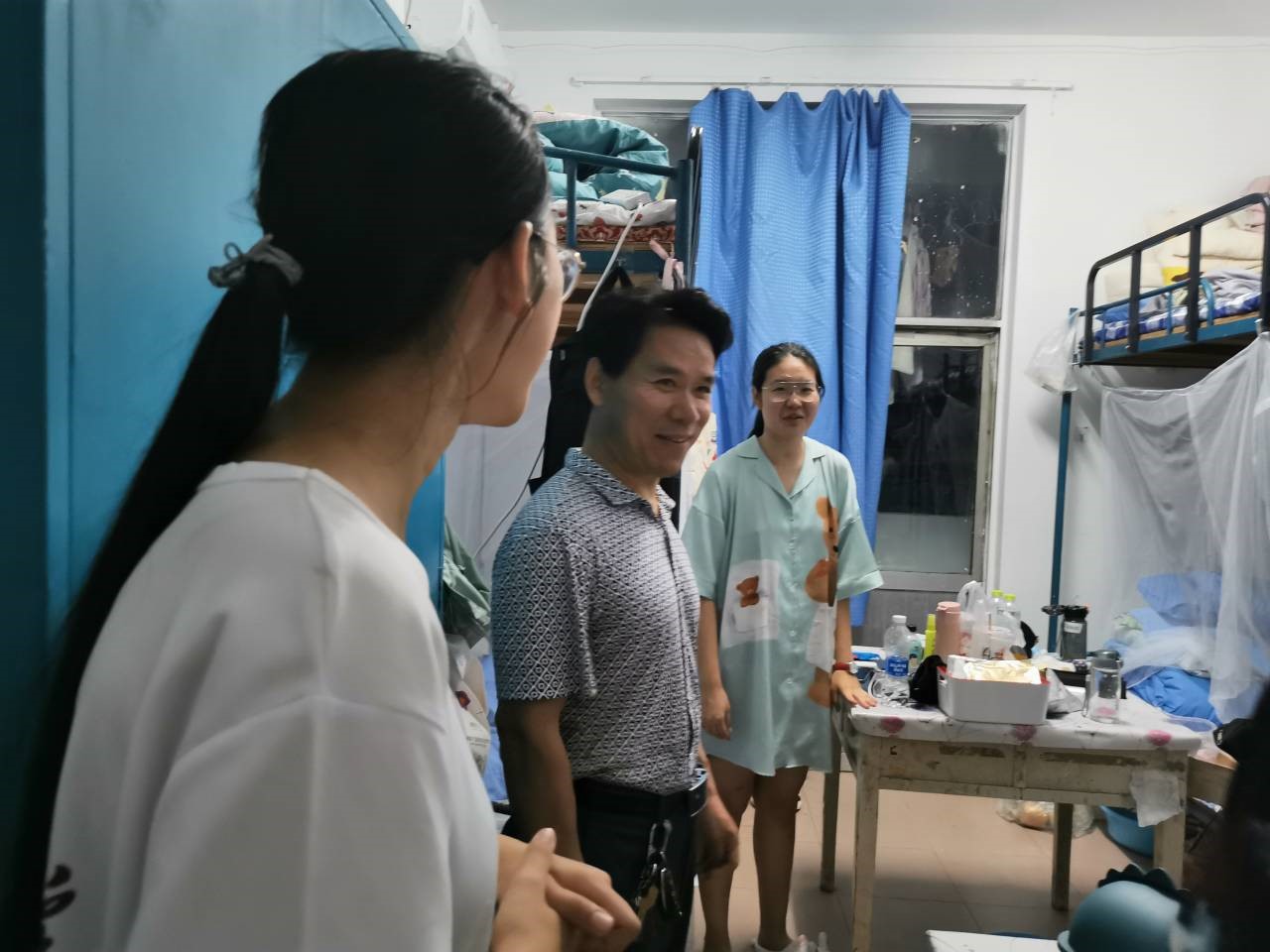 9月12日晚,学院领导、老师走进宿舍看望并慰问新生,分别走访了西公寓四号楼、六号楼以及北公寓三号楼、五号楼,走进宿舍与新生亲切交谈,对新生提出的问题进行详细的解答,关心新生是否适应校园环境,提醒同学们注意身体和宿舍安全等,并给新生提出舍友和睦相处、互帮互助、监督学习的建议,希望新生调整心态、适应校园生活,及时全身心地投入到学习生活中去。