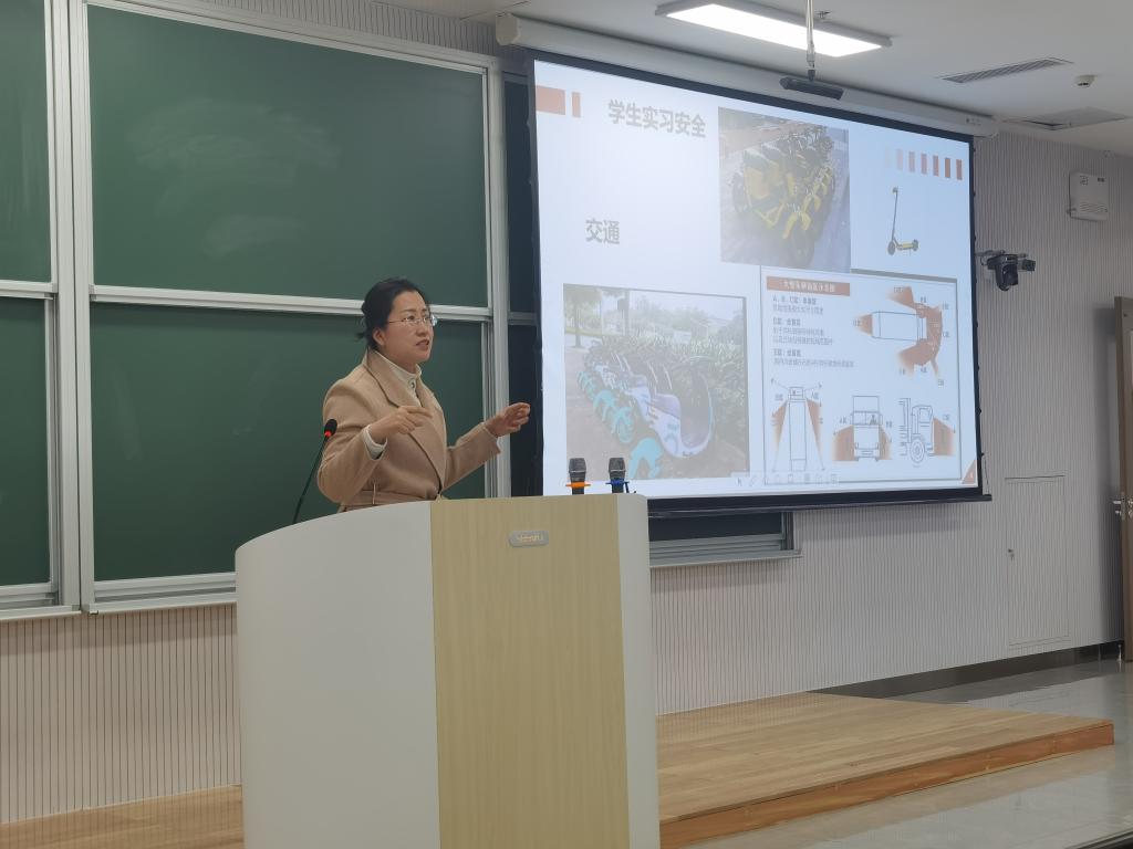 在致知楼B102召开安全教育大会,强化实习安全教育与专业指导。会议由党委副书记朱伟卫主讲,院长何文广、副院长李海青、副院长王晓明、全体实习指导教师和实习学生参加了此次会议。