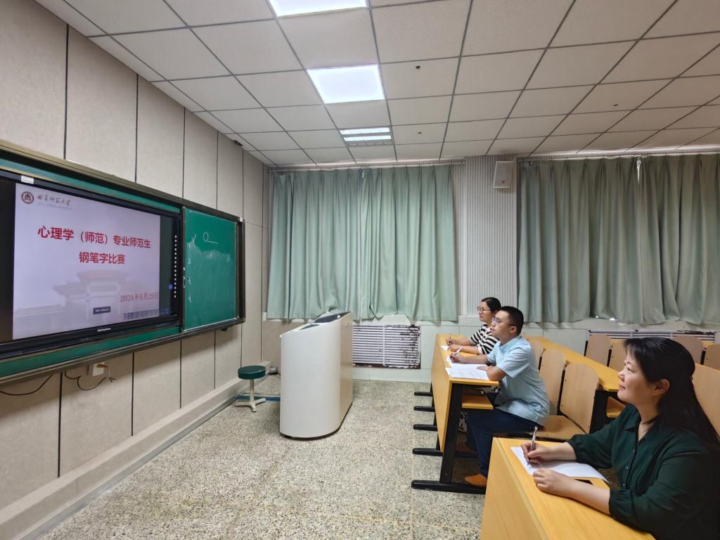 于5月29日心理学(师范)专业师范生钢笔字比赛。本次比赛邀请李海青副院长、孙传波老师和杨加芹老师担任评委。