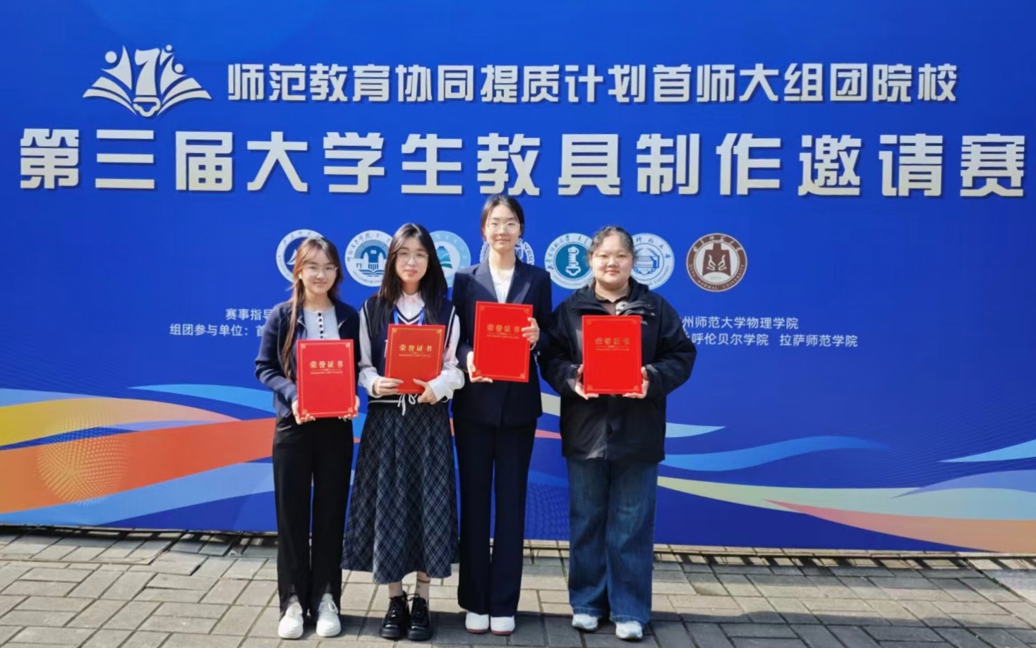 红桃视频 讯(通讯员:王钰)10月31日至11月2日,师范教育协同提质计划首都师范大学组团院校第三届本科生教具制作邀请赛在杭州师范大学隆重举行,我院学子凭借其卓越的创新与实践能力,其参赛作品《闪光融合实验仪》与《大五人格可视化探索教具》在众多优秀作品中脱颖而出,双双荣获大赛三等奖,充分展现了红桃视频 学子扎实的专业功底和突出的综合素养。
