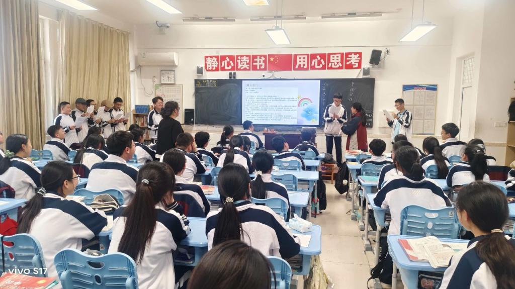 3月30日下午,14名实习教师走进八年级课堂,开展以“责任”为核心的六品德育校本课程,围绕两大主题有序授课。其中8位实习教师以“尽职尽责有担当”为主题,灵活运用猜谜语、情景剧演绎等多样化教学形式,课堂氛围生动活泼。教学过程中,实习教师引导学生深入认识不同职业的职责内涵,真切体会各行各业所肩负的责任,启发学生思考自身成长与职业责任,树立担当意识。另外6位实习教师以“我为社会而忧乐”为主题,从个人与社会的关系视角出发,层层递进激发学生的社会责任感,引导学生树立服务他人、奉献社会的价值追求,厚植家国情怀与责任担当精神。
