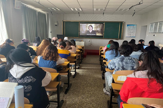团委组织学生在学院411教室观看由人民网联合省委教育工委组织开展的“同上一堂‘平凡英雄·青春百年’思政大课”网络直播课程。