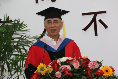 教师代表井维华教授对全体毕业生顺利完成学业表示衷心祝贺,希望他们拥有高尚脱俗的品格,拔尖的专业能力水平,悉心叮嘱毕业学子保持一颗上进之心,有始有终地学习、有声有色地工作、有滋有味地生活、有情有义地奉献。井老师即将荣休,毕业生们为井老师送上了鲜花和热烈掌声,以表达对井老师教导的感激之情和依依不舍之情。