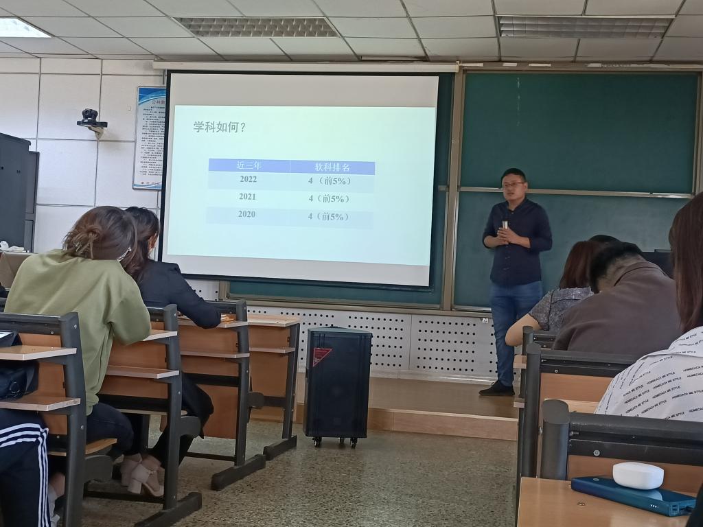 其次,王晓明副院长介绍了我院研究生招生和培养情况。我院的招生规模逐年增长,门类齐全,调剂越来越难。在研究生培养方面,研究生导师们尽职尽责,提供优质的学术交流平台,同时有丰富的文化生活,人际关系和谐融洽,学院奖助体系完备。建议同学们,认清目前日趋激烈的竞争形势,报考本校优势明显,一志愿报考的成功率较高。