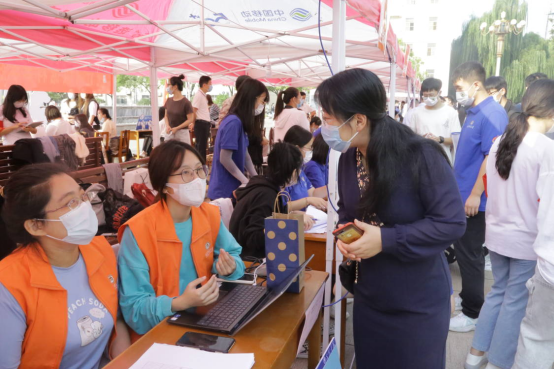 学生会各部门志愿者积极活跃在迎新工作一线,尽最大努力为新生提供便利、周到的入学服务。其中学院团委、学生会的工作人员分工合作,大大提高了迎新工作的效率。报道过程中,首先引导新生进行核酸检测,随后陪同新生来到迎新棚进行收取录取通知书、统计基本信息、发放校园卡、安置住处等一系列的流程,迎新工作有条不紊地进行着。同时,在校内各个站点、迎新点和宿舍也有红桃视频