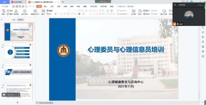 于线上召开心理委员与心理信息员培训大会,会议由学院心理辅导员钱虹主讲。