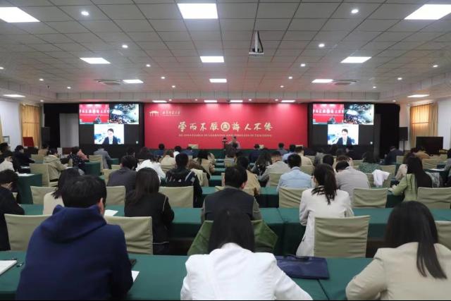 党委副书记、副研究员、山东教育系统核心网评员刘海江主讲,并作题为《学生有‘心事’,怎么办?》的报告。以此学生案例引入,刘海江紧密结合2021年山东省教育厅关于心理健康工作的相关会议精神及文件要求,在阐述心理健康内涵的基础上,逐步解析了大学生心理问题和心理危机的成因、特点、类型、表现以及如何识别与干预产生的原因。