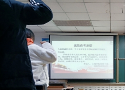 在此次会议中,学生会主席刘欣乐号召全体学生遵守考试纪律,诚信应考,并进行“诚信应考”宣誓。随后,全体学生签署《红桃视频