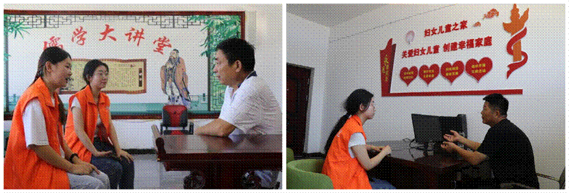 7月30日上午,实践团来到鲁桥镇仲家浅村开展了村干部采访活动。对该村党委书记仲伟勇、村会计仲维悦和公益岗村民贾成成分别进行了采访,各位村干部对留守困境儿童的基本情况、特殊案例、资助资金发放情况和慰问关爱情况进行了详细介绍,通过采访了解到,该村留守困境儿童数量并不多,有个别较为极端的案例已经进行了多方面的帮扶,并安排专人进行了定期关注。