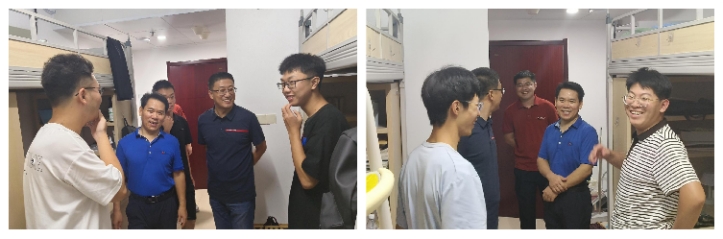 在研究生宿舍中,领导老师们了解了同学们的家庭状况、入学后的体验、对学校的印象等,针对维持整洁宿舍环境和构建和谐的宿舍关系提出了宝贵建议,同时就同学们在日常生活中遇到的问题给予了耐心解答。提醒同学们关注个人卫生,保持规律的作息时间,适量进行体育锻炼,培养积极乐观的心态;同时,叮嘱同学们珍惜宝贵的研究生时光,合理规划自己的学业,主动参与校园的文化和体育活动,持续提升个人全面素质。
