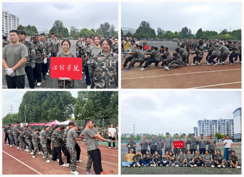 绳牵众志,力拔山兮。在“峥嵘七五载,筑梦新时代”军训拔河比赛中,参赛队员们全神贯注,互相鼓励,紧握绳索,脚跟蹬地,身体后倾,使出浑身解数向后拉,为连队、为学院的荣誉而战,现场气氛热烈,加油呐喊声响彻云霄。一根紧绷的绳索承载着同学们共同的目标和梦想,他们脚抵脚,肩并肩,仿佛融为一体,坚定的眼神中流露出昂扬的斗志,响亮的口号尽显铿锵的意志,在比赛中展现出的团队精神和坚韧不拔的精神赢得了在场师生的认可和赞赏。