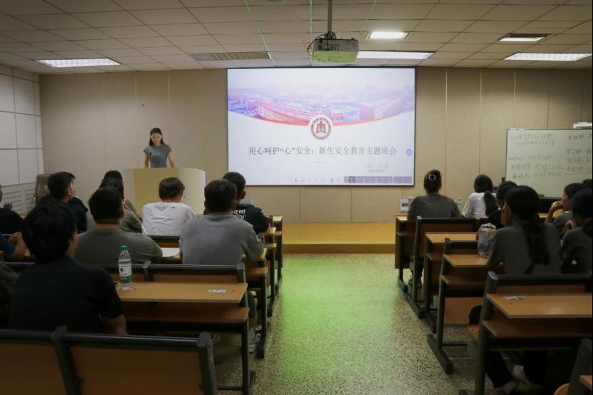 )为增强2024级新生的安全防范意识与能力,尽快适应大学生活,9月8日晚,心理学院于415室召开2024级新生安全教育主题班会。本次会议由2024级辅导员助理张文艳主讲,2024级全体本科生参与。