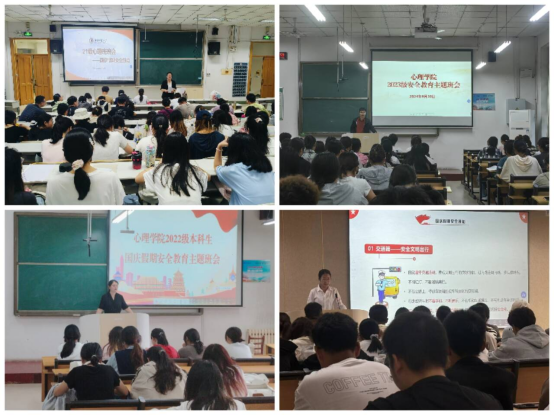 各年级分别召开国庆假期安全教育主题班会。学院党委副书记、2021级辅导员朱伟卫,团委书记、2023级辅导员贺现网,2022级辅导员钱虹和2024级辅导员吕超分别结合各年级实际情况召开主题班会。