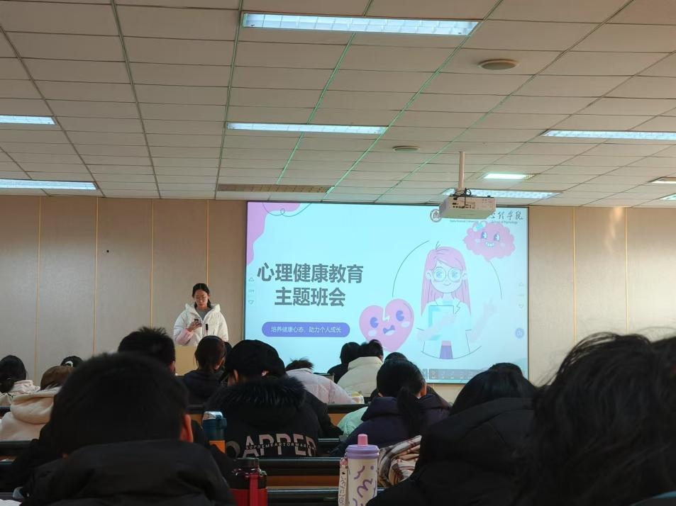 24级本科生开展了心理教育主题班会,班会由辅导员吕超主持,心理学(师范)班心理委员姜佳妤主讲,公费师范生班心理委员王茜对心理健康培训内容进行了讲解补充。