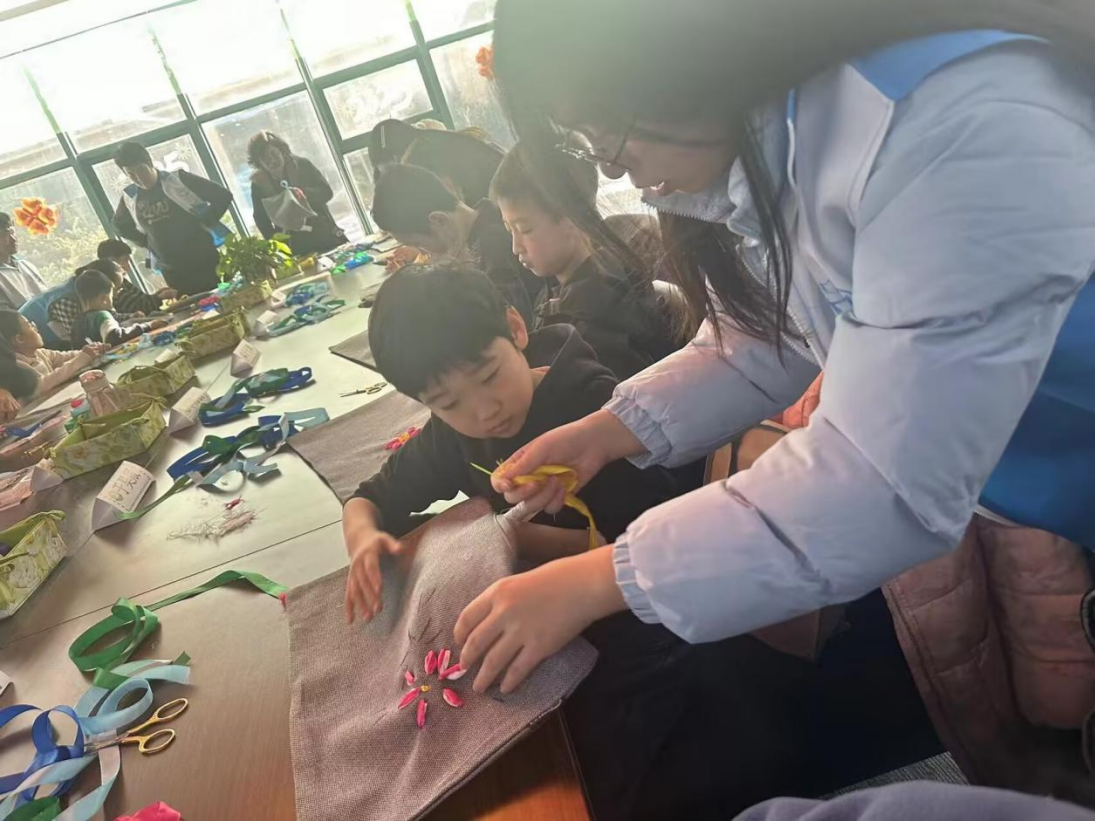 “心桥筑梦,理行致远”实践队开展了一系列社区志愿活动。他们为社区儿童带来国学经典诵读课程,辅导作业,陪伴玩耍,和鲁绣传承人一起辅助孩子们体验鲁绣。在丰富孩子课余生活的同时,传承文化,展现出当代大学生的担当。