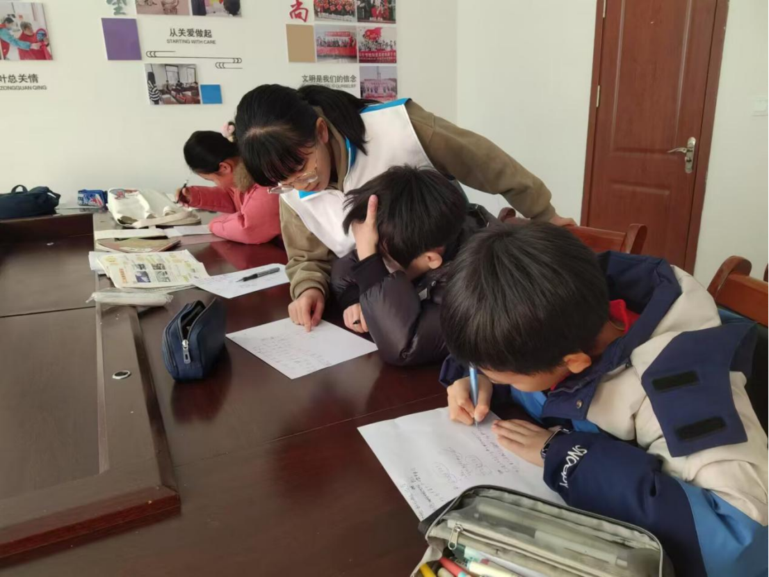 图3 实践队队员在辅导社区孩子完成作业