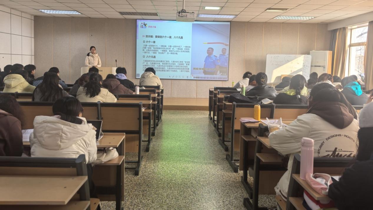 最后,辅导员吕超通过亲身经历,向大家介绍新型诈骗手段,警示学生们要时刻注意防范。同时,还告诫同学们,遇到可疑情况时要保持冷静,及时与老师、家长或警方联系,切勿轻易转账或泄露个人信息。