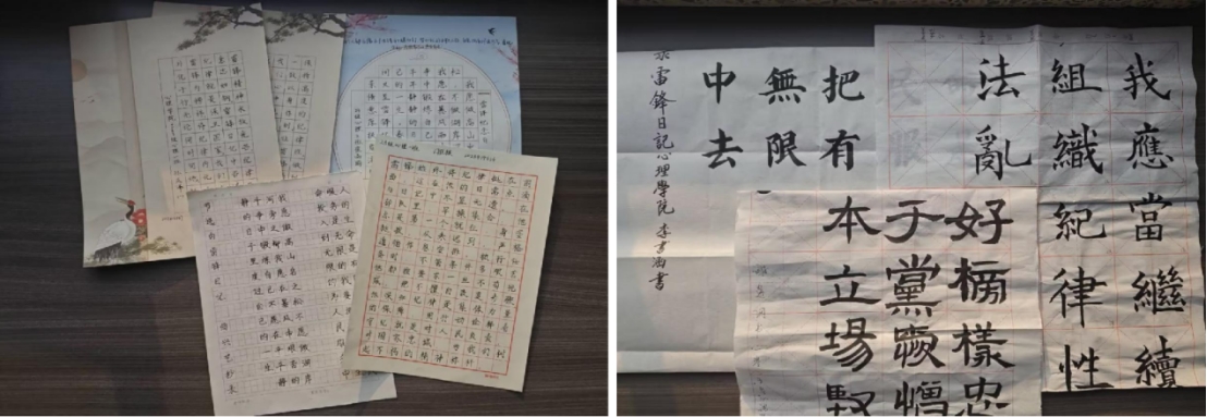 成功举办“雷锋榜样传风范,纪律规绳入墨香”硬笔软笔书法大赛。全体本科生积极参与。