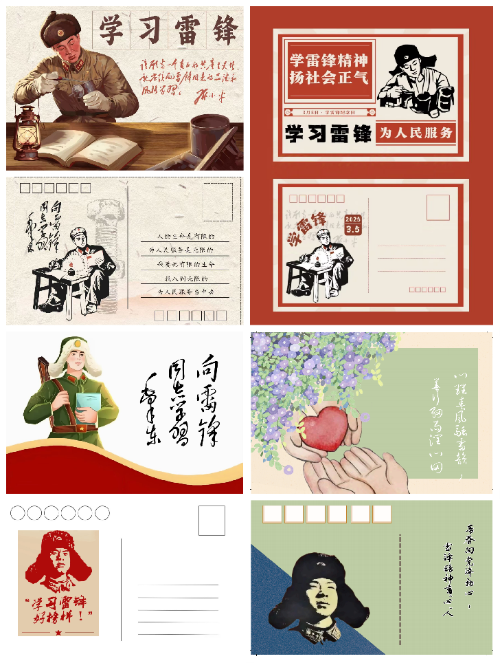 活动分为作品征集、评选和展示三个阶段。在作品征集阶段,同学们积极参与,围绕雷锋精神与心理健康主题,充分发挥专业特长和创意,设计出了一张张独具匠心的明信片。作品不仅展现了同学们对雷锋精神的深刻理解,还融入了丰富的心理健康元素,体现了心理学的专业特色。