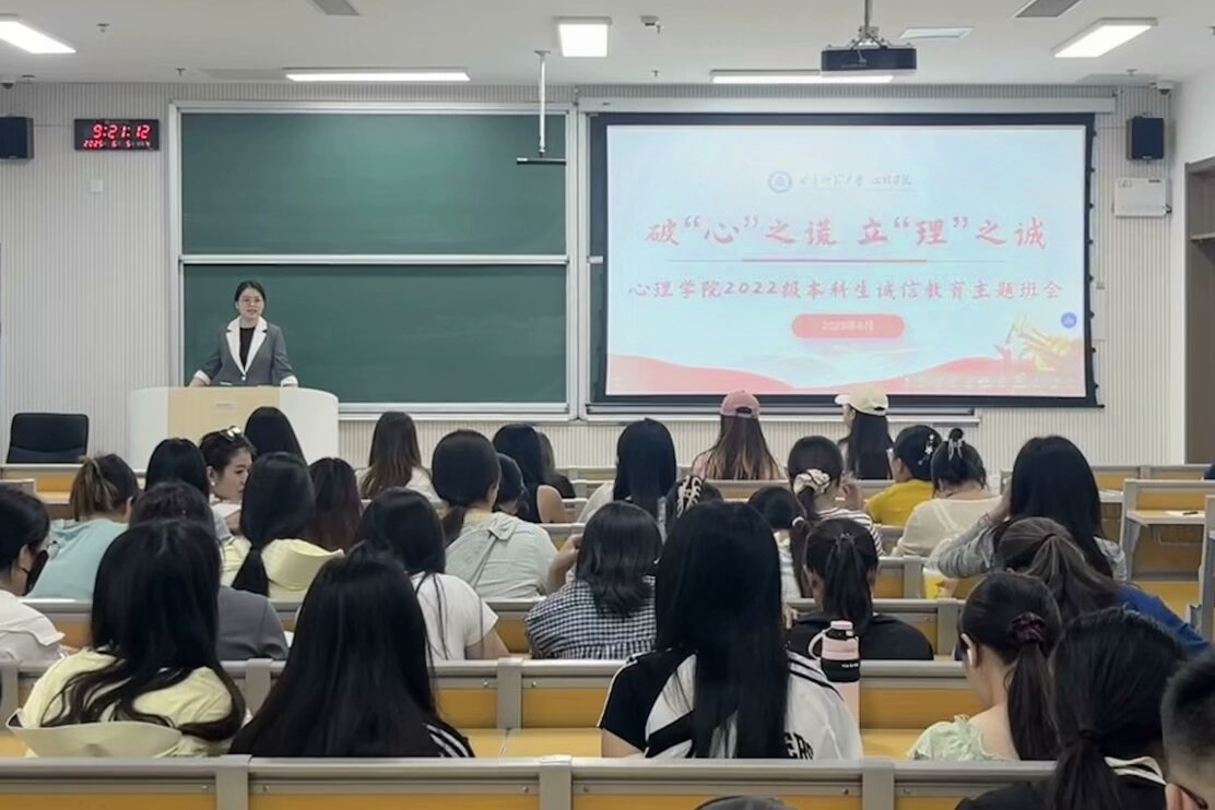 诚信教育主题班会辅导员宣讲团队成员、2022级辅导员钱虹以"破'心'之谎 立'理'之诚"为题于6月5日在致知楼B103室开展诚信教育主题班会。班会以互动实验开篇,通过“测谎仪能否100%检测谎言”的提问引发思考,辅之以马克杯描述实验与“对视说真话”体验,从认知冲突切入揭示诚信的心理机制。班会内容分层递进,从构词法解析“诚”与“信”的内涵,到追溯“言必信,行必果”的文化传统与《中华人民共和国民法典》诚信原则;结合高校替考开除等真实案例开展警示教育,深入剖析作弊借口背后的心理学归因;更从学习、科研、生活三大领域系统梳理诚信实践路径,以《大学》修身次第引导学生将诚信内化为行为准则。班会立足师范生职业责任,强调“严谨治学、真诚待人”的专业操守,通过签订《诚信承诺书》形成教育闭环。以“专业知识+价值引领”的诚信教育模式,深化了学生对诚信社会价值的认识,并从心理学角度为传统美德赋予了崭新的时代意义,为培育“以诚立身、以理育人”的未来教育工作者奠定思想根基。