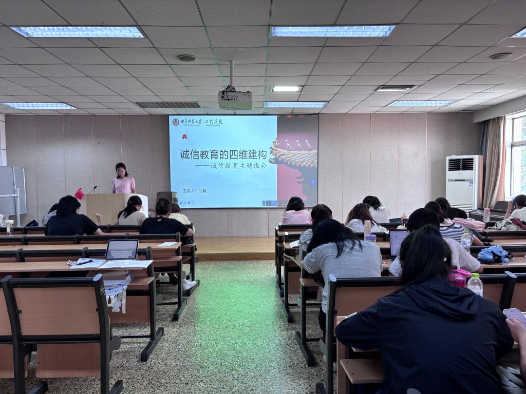 开展了诚信教育系列主题班会,班会由诚信教育主题班会辅导员宣讲团队成员钱虹、吕超主讲。