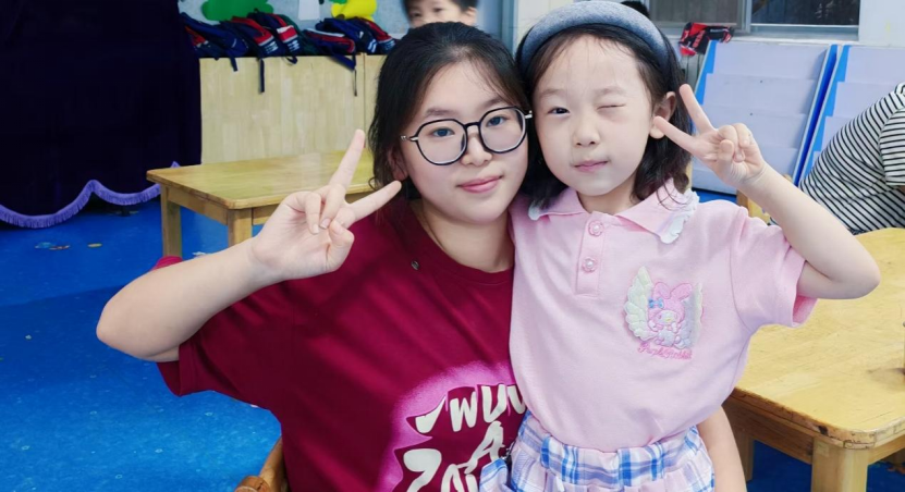为了让“准老师们”迅速进入状态,园所提前组织了跟岗培训:从运用观察学习理论模仿晨检七步洗手法的口令节奏,到依据幼儿注意发展特点把握午睡故事。5日下午,实践队成员正式接过配班任务,实行带班模式——一名大学生与一名主班老师结对,在教学、保育、家园沟通全流程中,运用心理学中的共情、积极强化等技巧与孩子和家长沟通。