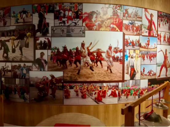 实践小组首先抵达了海阳市博物馆,了解了海阳大秧歌的历史起源和发展过程。海阳大秧歌凭借其独特的艺术魅力和深厚的文化底蕴,已被列入国家级非物质文化遗产名录。在博物馆的展厅内,队员们参观了各式秧歌服饰、表演道具及珍贵的历史影像资料,使实践小组的成员们深受启发,对这一非物质文化遗产有了更加直观和深刻的了解。通过与非遗传承人的交流,实践小组了解到当前面临的三大难题:全市12位代表性传承人的平均年龄为61岁,一些技艺如“长穗花鼓”濒临失传;传统动作需要3-5年的系统学习,但现代学习者往往因体能限制而简化动作;原有的21种曲牌现存不到一半,南部地区特有的小架子秧歌被大架子风格所取代。