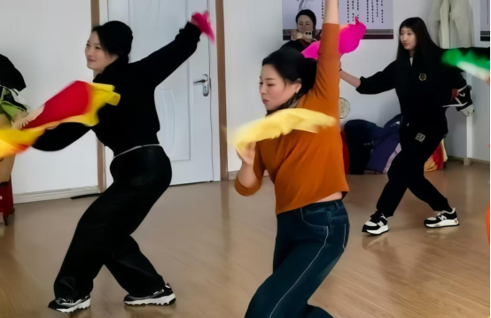 图2 实践队员跟随非遗代表传承人学习大秧歌