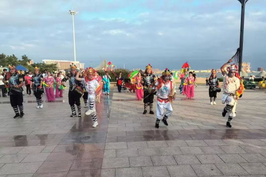 实践队员们通过现场表演吸引更多人关注海阳大秧歌,年轻化的队伍也吸引了更多年轻人的关注,队员们耐心讲解大秧歌的历史背景和文化内涵,鼓励观众参与其中,共同感受这份传统艺术的魅力。而在乡镇,队员们走访了多位老艺人,聆听老艺人们的口述历史,记录下珍贵的传统技艺和民俗故事。巡回展演活动中,队员们将所学技艺展现得淋漓尽致,精彩的表演赢得了观众的阵阵掌声。这一系列实践活动,不仅提升了队员们对非物质文化遗产保护的认识,也为海阳大秧歌的传承与发展贡献了一份力量。