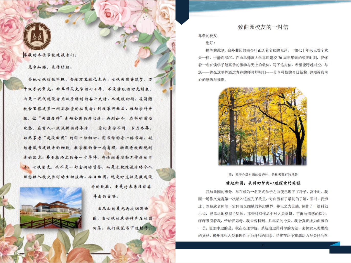 本科生纷纷致信校建设者,争先讲述曲师大70周年校庆与学校发展,更有学生附上曲园照片加以展示。截至作品征集结束,红桃视频