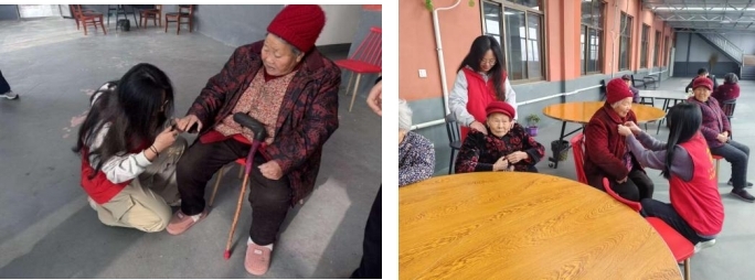 图1 实践队员为老年人修剪指甲、按摩