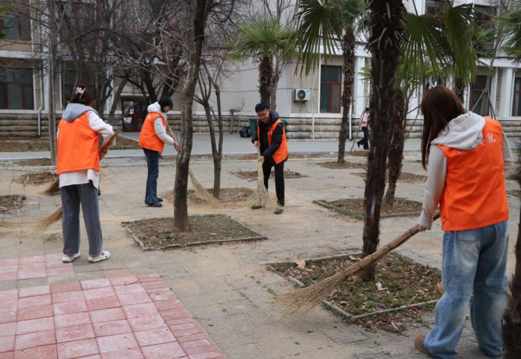 全体志愿者以高度的责任意识投身行动,合理分工、协同配合,对教学楼周边、公共走廊、绿化带等区域进行全面清洁,重点清理垃圾杂物、卫生死角与枯枝落叶,同时擦拭公共设施、开展护绿行动,切实提升校园环境整洁度与美观度。活动中,志愿者们热情高涨、干劲十足,将吃苦耐劳的优良作风、团结协作的集体精神融入每一个服务环节,用双手守护校园美好,用实干诠释志愿内涵。
