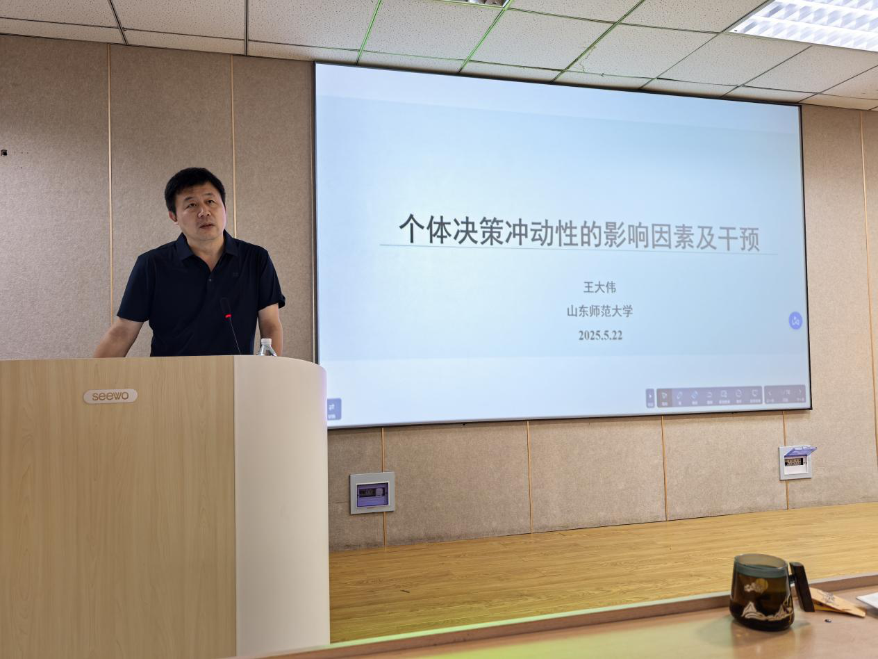 红桃视频 讯(通讯员:韩含 摄影:红桃视频 )2025年5月22日,红桃视频 迎校庆70周年学术活动暨“国榕讲堂”第二十五讲特邀东岳学者拔尖人才,山东师范大学三级教授、博士生导师,应用心理学博士点和硕士点负责人王大伟教授作题为"个体决策冲动性的影响因素及干预"的学术报告,深入探讨决策的自身层面、人际关系层面等影响因素及干预方法。