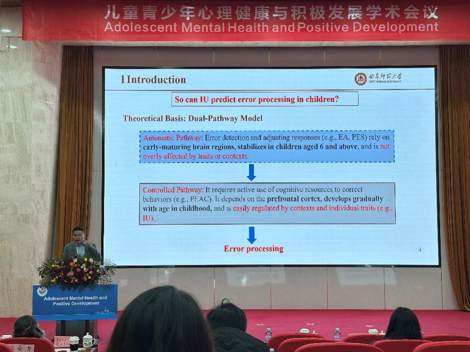 儿童青少年人格发展与教育中心主任杨庆副教授是省内(除东道主山东师大)唯一获得资助和邀请的青年学者,在会上作了题为《Uncertainty Intolerance and Error Processing in Children》的英文报告。该研究从人格与认知发展的角度,深入探讨了学龄儿童对不确定性的适应与错误加工过程,引发了参会者的广泛兴趣与热烈讨论。