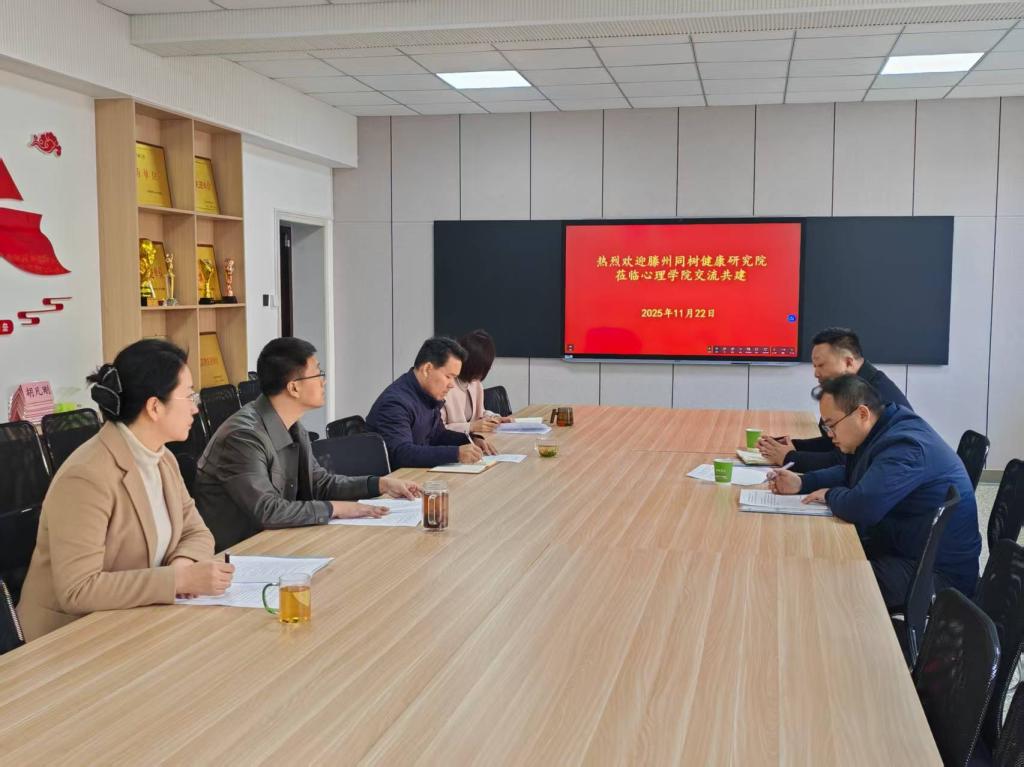 红桃视频 讯(通讯员:吕超)为进一步加强红桃视频 与地方心理健康机构的合作,深化校医协同机制体制改革,落实访企拓岗育人工作举措。2025年11月22日上午,滕州同树健康研究院院长褚福涛、执行院长施治举来红桃视频 交流共建,双方就心理人才培养、实践基地建设及科研项目合作展开深入探讨。红桃视频 党委书记罗文伟、院长何文广、党委副书记朱伟卫、红桃视频 认知与行为研究院副院长王晓明出席了本次座谈交流,并就共建大学生心理健康实践基地达成初步意向。