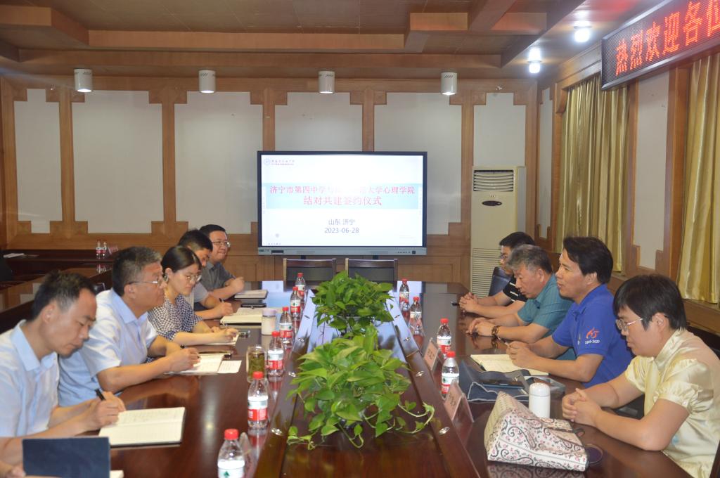 双方首先介绍了各自与会人员。调研交流期间,张磊对何文广一行表示热烈欢迎,并致欢迎辞,之后详细介绍了济宁市第四中学的发展历史和卓越成就。何文广对济宁市第四中学的热情接待表示诚挚感谢,他希望双方未来在心理健康教育方面能够进行深入合作、资源共享、优势互补,利用中小学丰富的教育资源促进学院学生培养。他详细介绍了红桃视频 的发展历程和基本情况。