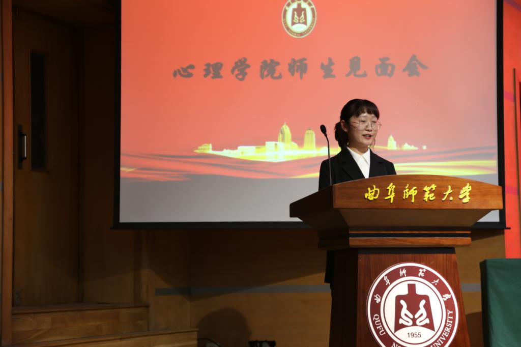 大会第三项,由2018级唐蕊同学作为学生代表发言。她结合自己的学习心得,为各位师弟师妹们分享了自己的学习经验,并提出了坚持读书、努力学习英语,多参加科研训练和比赛,做好个人生涯规划等宝贵建议,帮助同学们拨开迷雾,指明方向。