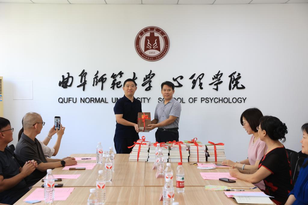 何文广院长代表学院接受捐赠,并表示“校友是母校最闪耀的名片,你们在行业中的成就,让曲师大的心理学品牌熠熠生辉。”这份心意将用于支持学院图书角建设,助力学子专业能力提升。