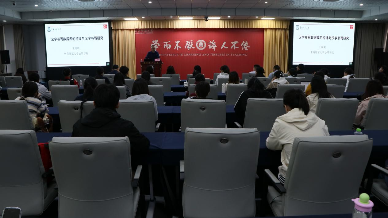 在报告中,王瑞明教授系统介绍了其团队在汉字书写领域的一系列研究成果,包括:基于大规模行为实验构建汉字书写数据库;深入探讨汉字书写中的提笔忘字与笔尖效应的发生机制及影响因素;揭示双语书写产生中的语言控制机制;通过“写作×听写”双任务范式,系统考察二至五年级小学生汉字书写错误的发展轨迹,并开发了小学生汉字书写能力测评工具。